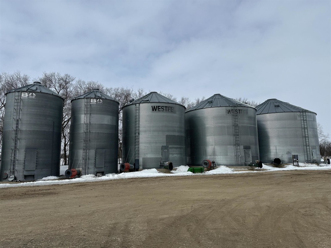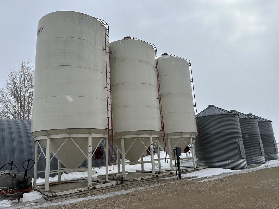 Grain or Crop Storage: | 1 x 24,800 bu flat bottom full floor air w/unload, 1 x 15,800 bu flat bottom w/aeration and unload, 1 x 10,000 bu flat bottom w/aeration and unload, 2 x 3,800 bu w/aeration, 3 x 3,300 bu hopper bottom w/aeration, 1 x 2,700 bu hopper bottom, 9 x 1,950 bu w/concrete floor |