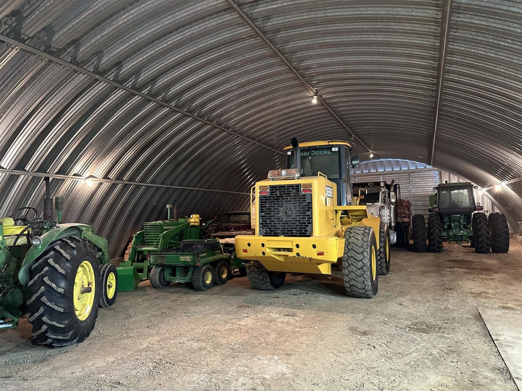 Machine Shed: | Quonset style, 51' x 101'. Metal with partial concrete floor and doors at both ends. |