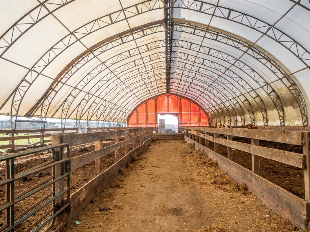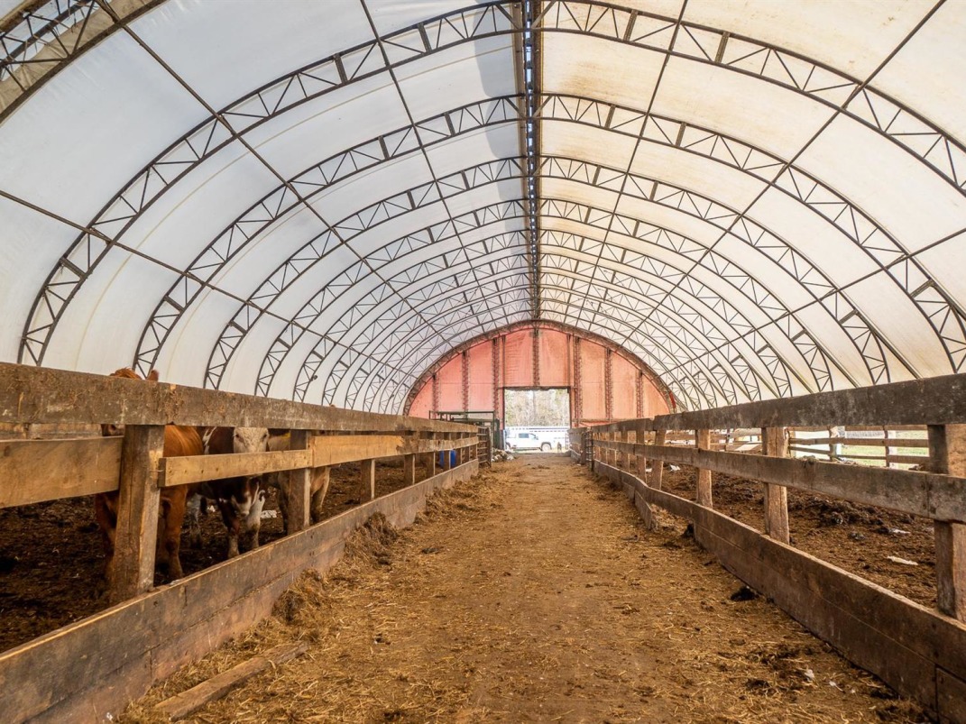 | Barn: | There is a workshop, storage buildings and a newer large tarp barn. The tarp barn measures 64ft x 288ft and is an open span building which has been used for livestock and has an excellent modern arrow 2 way cattle handling system complete with scales and a tub. Shed could also be altered to include anything from sheep to a riding arena for your horses. |