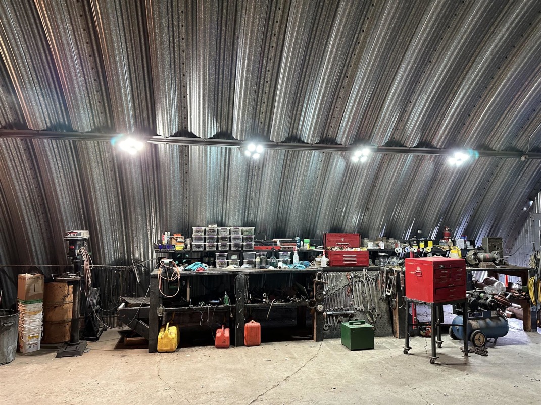 Machine Shed: | Quonset style, 51' x 101'. Metal with partial concrete floor and doors at both ends. |