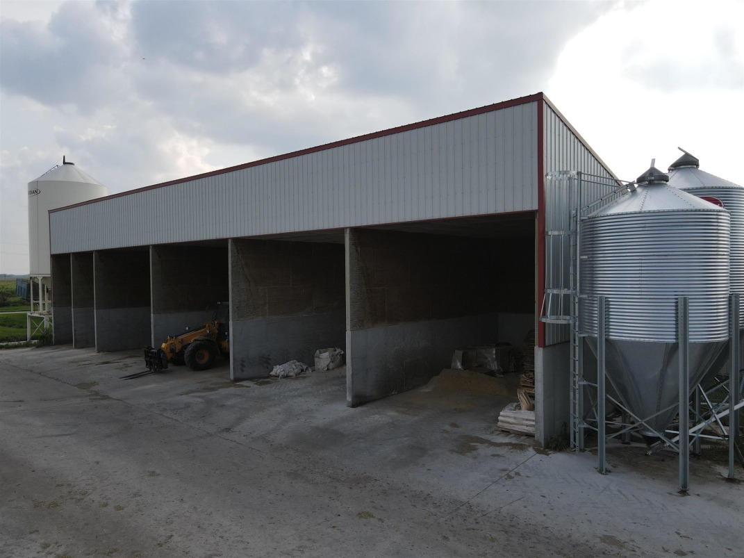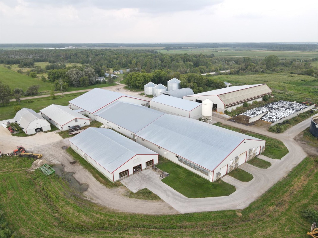 With over 900 acres of productive land, the property supports both on farm feed production and commercial grain operations. Feeding is streamlined year round thanks to concrete connections between all barns and the centralized feed area, ensuring trouble free access even in the harshest weather conditions.