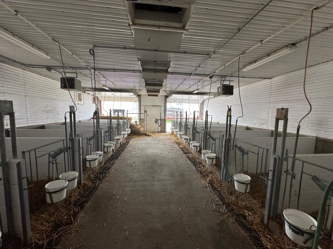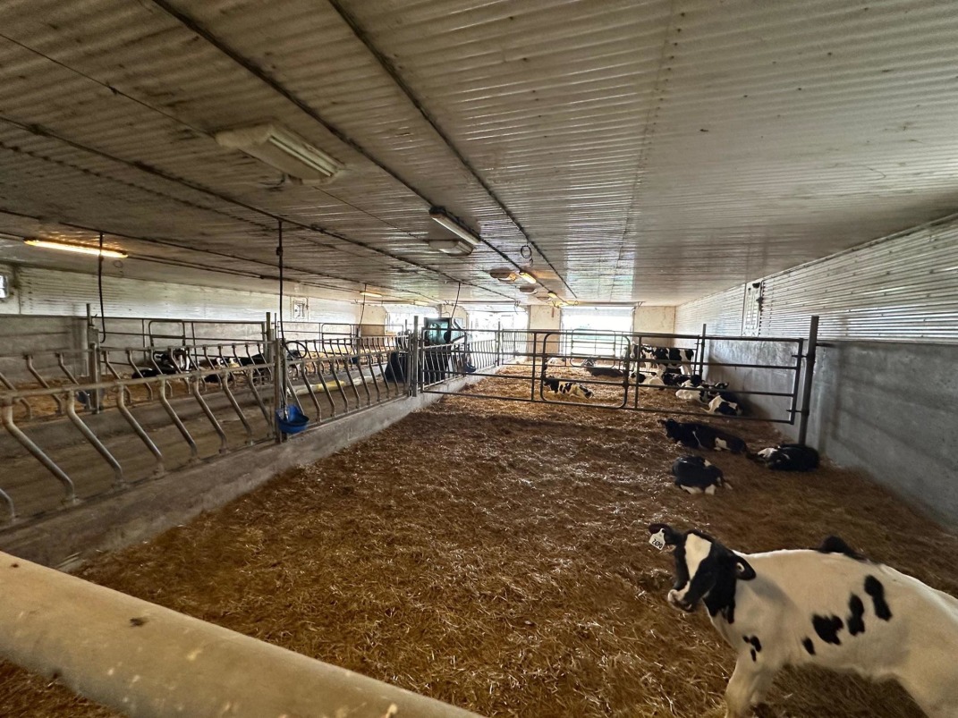 | Barn: | Calf barn - built in 2011. 54' x 100', having two sections of 15 calf pens on each side and separately climate controlled. Larger area with group penning on either side of drive in alley. |
