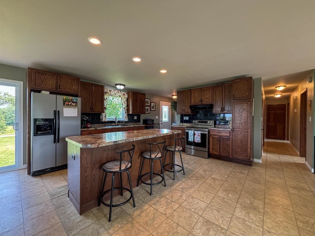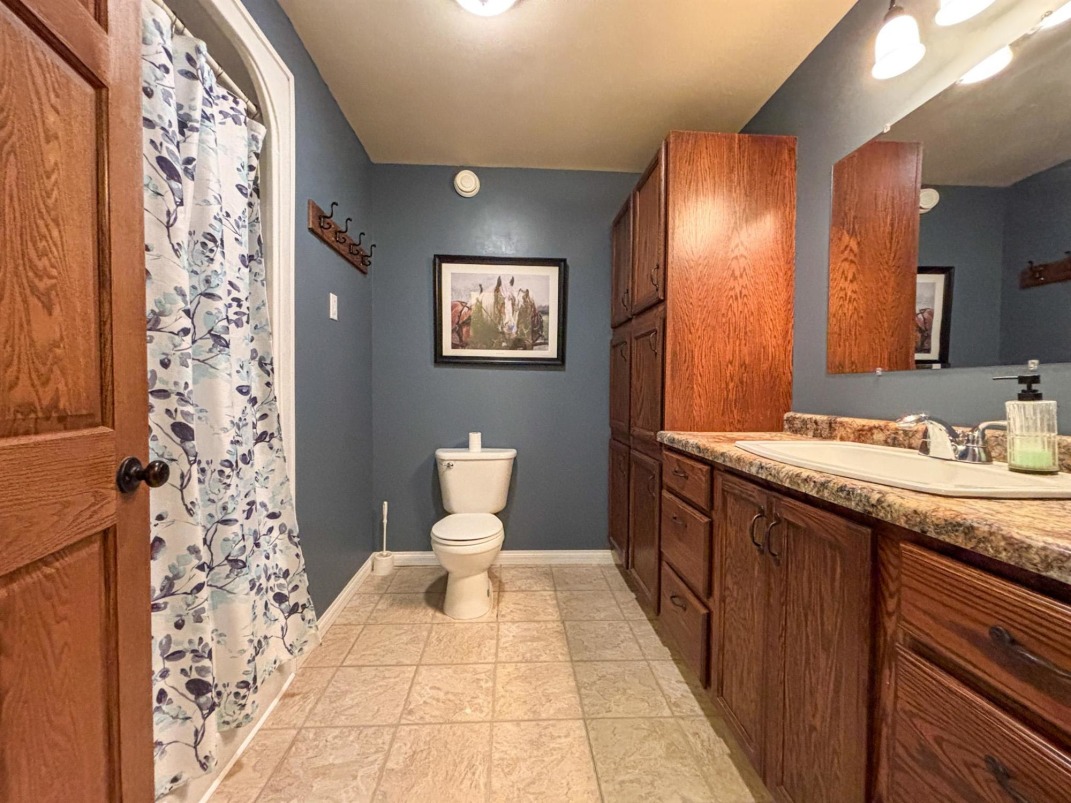 Primary Residence: | renovated walk-out bungalow features geothermal heating/cooling and in-floor basement heat. The spacious open-concept main floor includes a large kitchen with island and walk-in pantry, a bright dining area, and sunny living room. Three bedrooms on the main level include a primary suite with tiled shower ensuite, and a four-piece main bath. The full basement offers two more bedrooms, a den, four-piece bath, generous laundry room, utility room, massive mudroom, and rec room with patio doors to the yard. |