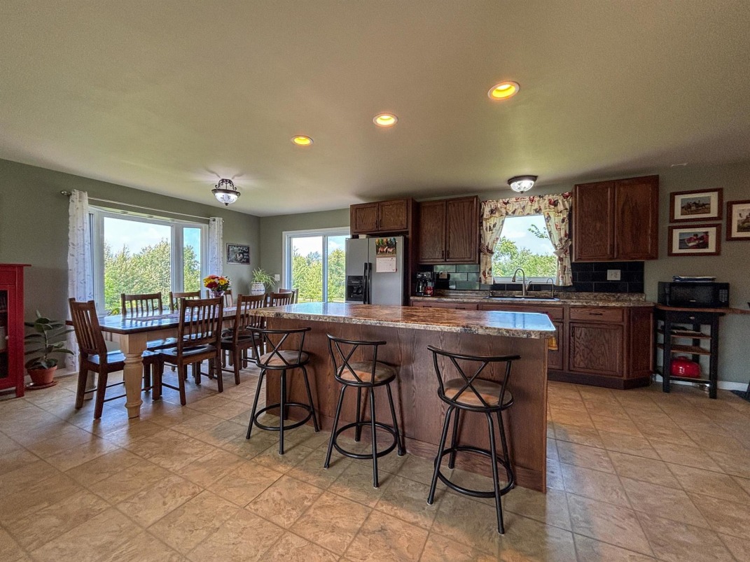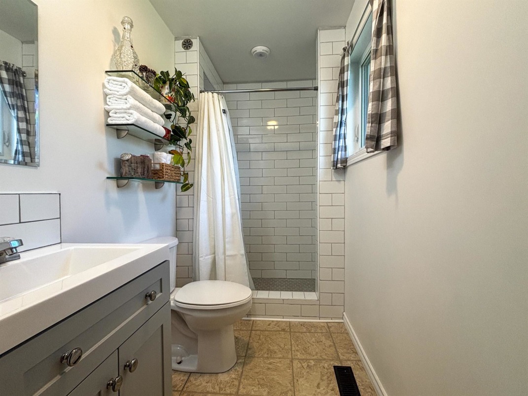 Primary Residence: | renovated walk-out bungalow features geothermal heating/cooling and in-floor basement heat. The spacious open-concept main floor includes a large kitchen with island and walk-in pantry, a bright dining area, and sunny living room. Three bedrooms on the main level include a primary suite with tiled shower ensuite, and a four-piece main bath. The full basement offers two more bedrooms, a den, four-piece bath, generous laundry room, utility room, massive mudroom, and rec room with patio doors to the yard. |