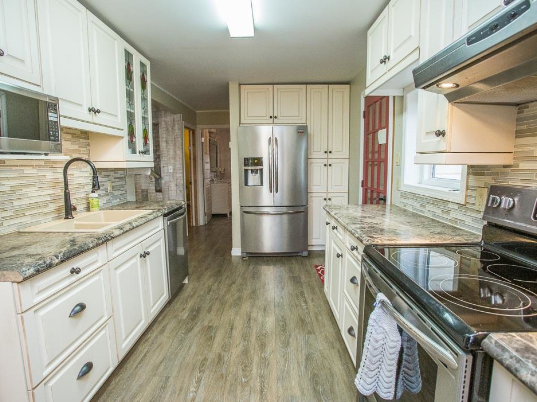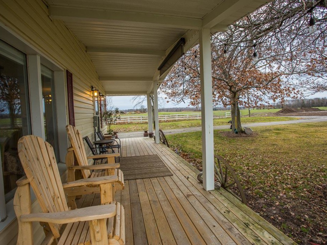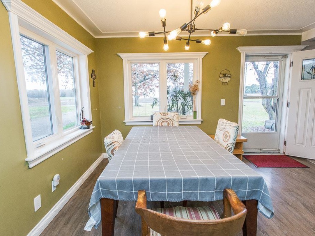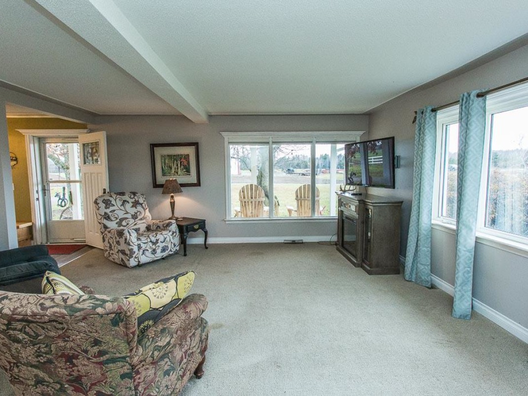 Upstairs, you’ll find four generous bedrooms, each flooded with natural light, along with a beautifully finished bathroom. A large flat lawn, three-car garage/workshop, and welcoming covered porch complete this ideal country property.